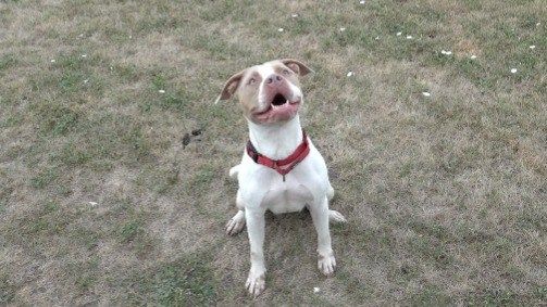 Lucy is a five-year-old Staffordshire Bull Terrier.